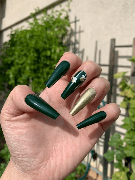 - Candy Cane o bastón de caramelo. Para este último puedes usar de fondo un tono de verde claro, después en un lado de tu uña pintas un bastón de caramelo. Sencillo, pero efectivo.