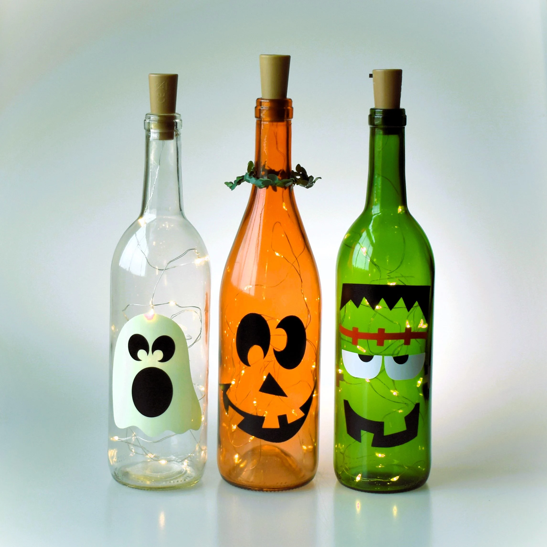 4. Botellas festivas. Puedes pintar botellas para las festividades que más te gusten, Navidad, Día de Muertos, Año Nuevo, etc. Lo único que necesitas es pintura, pinceles, material para decorar y tu imaginación. Pueden ser puramente decorativas o puedes rellenarlas con dulces e invitarles a tus visitas.