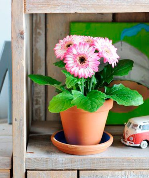 A pesar de ser una planta sensible a la manipulación, una vez que está arraigada esta se vuelve perenne. Cuenta con una gran variedad de colores, además de agradables olores que serán de gran utilidad. La gerbera es una flor que prefiere los ambientes húmedos, por lo que estará perfecta en el baño. Su riego debe ser constante, mas no en excesivo, evita que se encharque.
